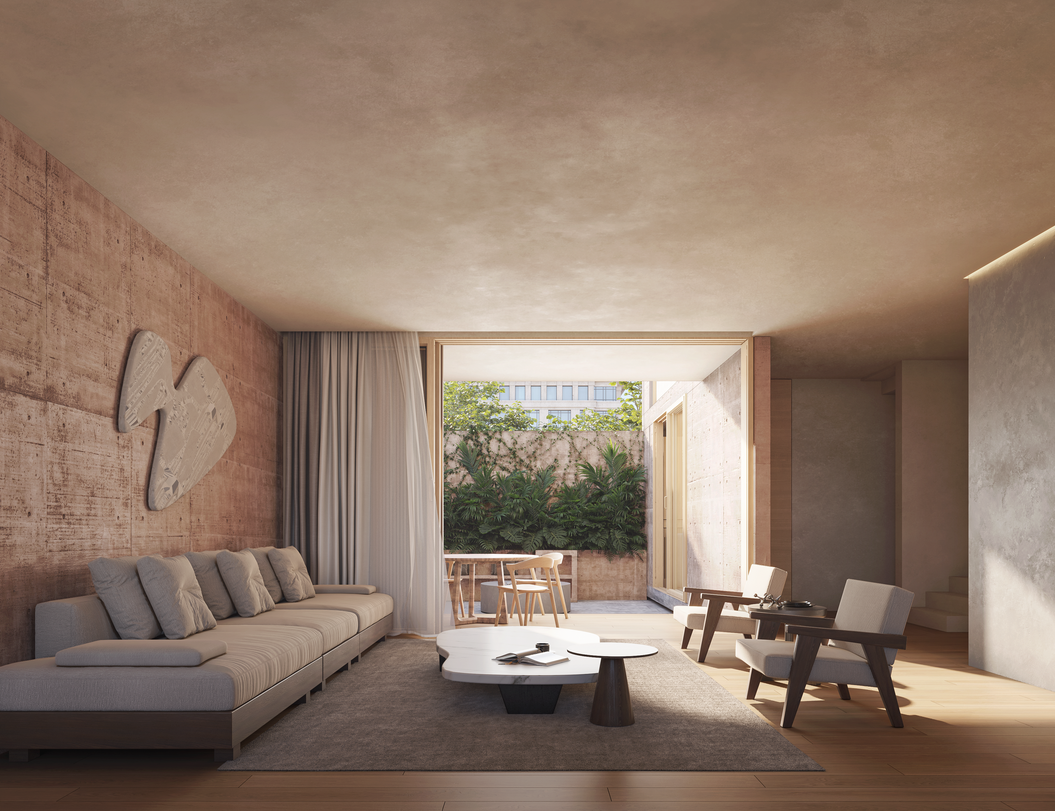 Designed by Héctor Barroso, with interiors by Estudio Alta Habitat, each of its three residences has been conceived as a unique piece, where light, material, and space intertwine naturally. Interior gardens, open terraces, and walls with warm textures create an atmosphere of shelter that allows one to breathe—even in the midst of the city’s pace.